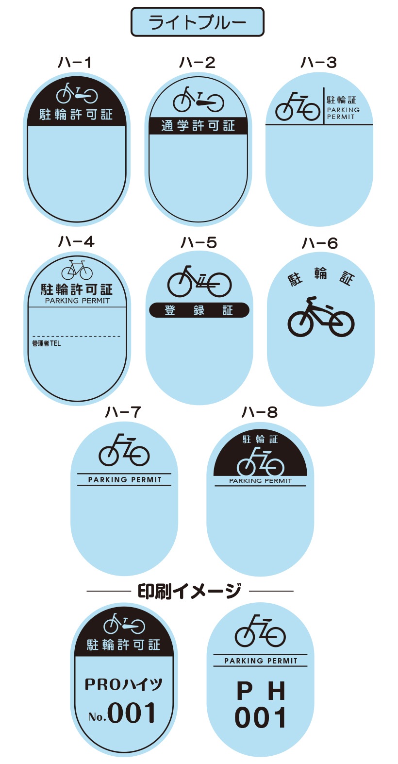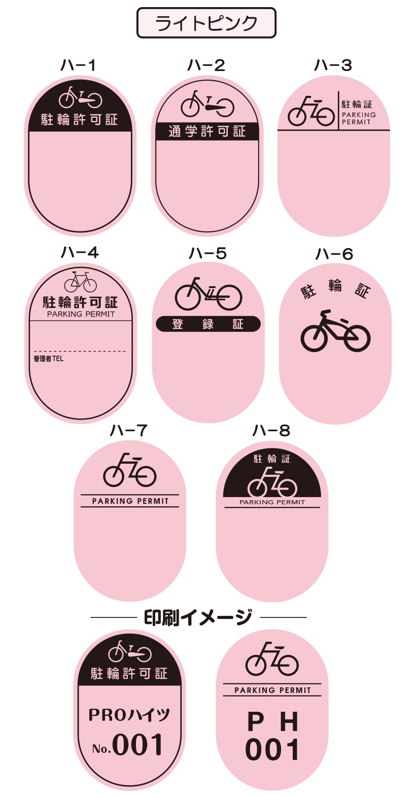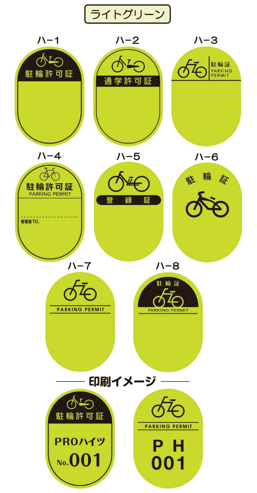 8つの基本デザインから選んで、 簡単に駐輪シールがご注文できます。