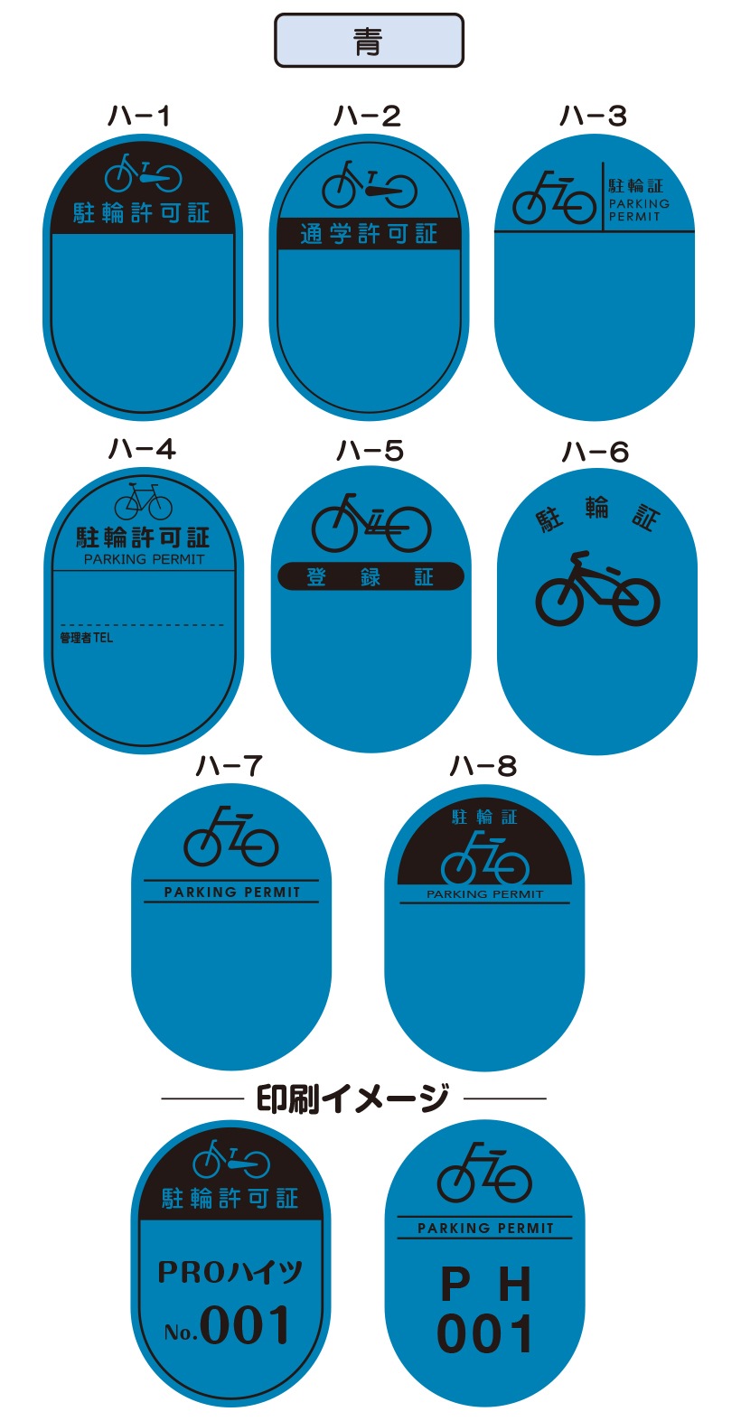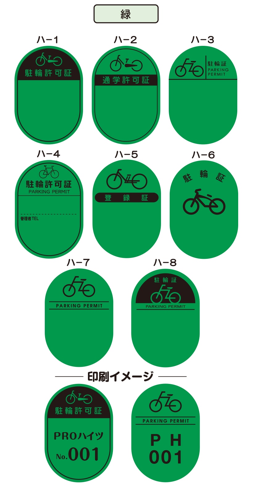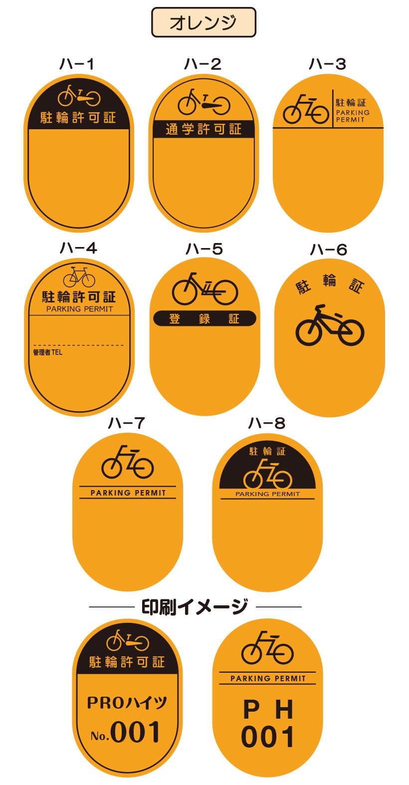 8つの基本デザインから選んで、 簡単に駐輪シールがご注文できます。