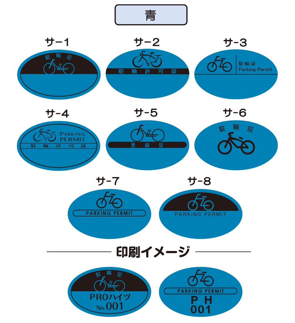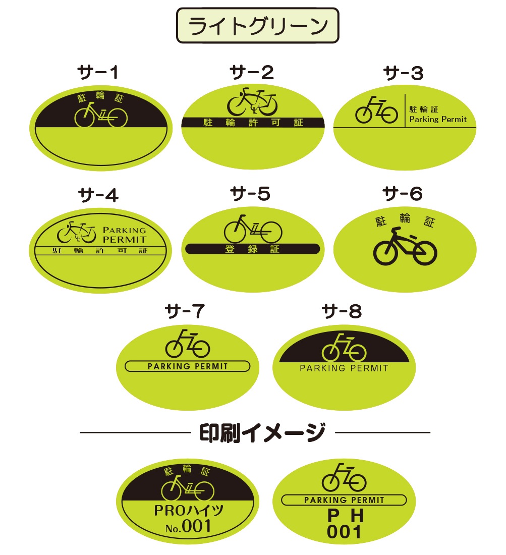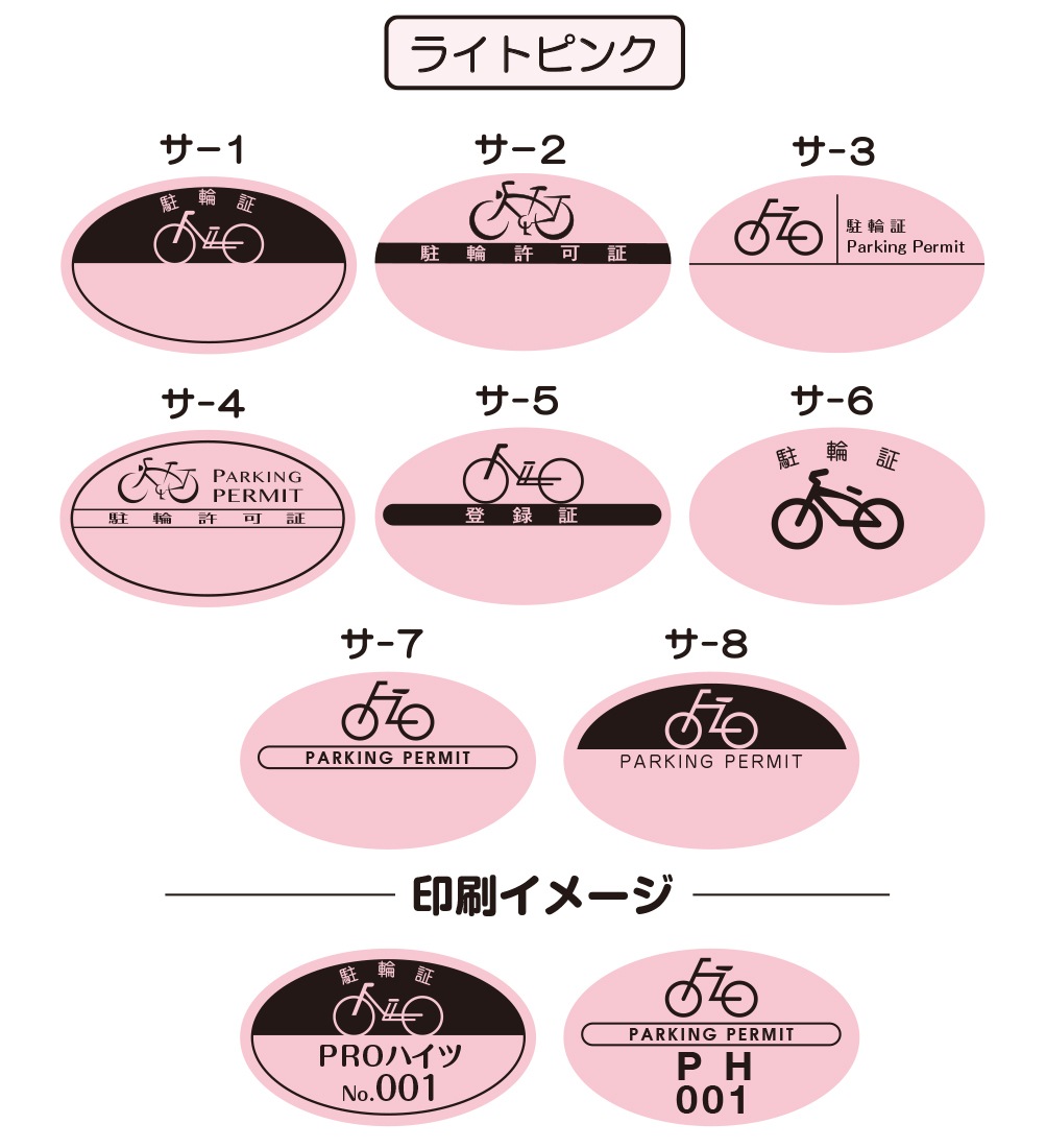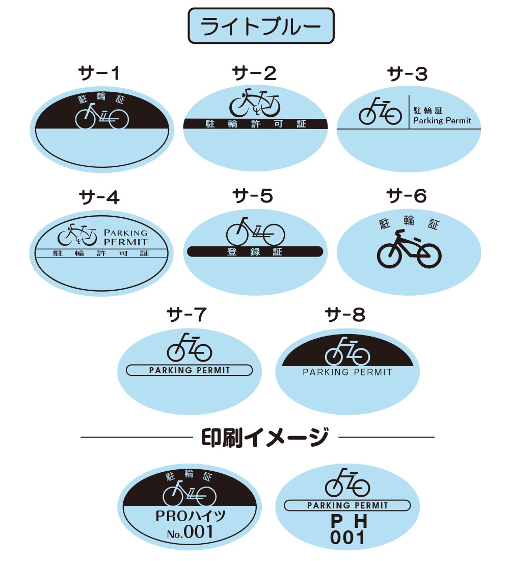 8つの基本デザインから選んで、 簡単に駐輪シールがご注文できます。